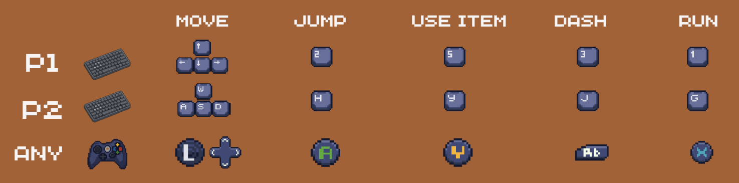 - Designed for local multiplayer with two players on controllers or shared keyboards